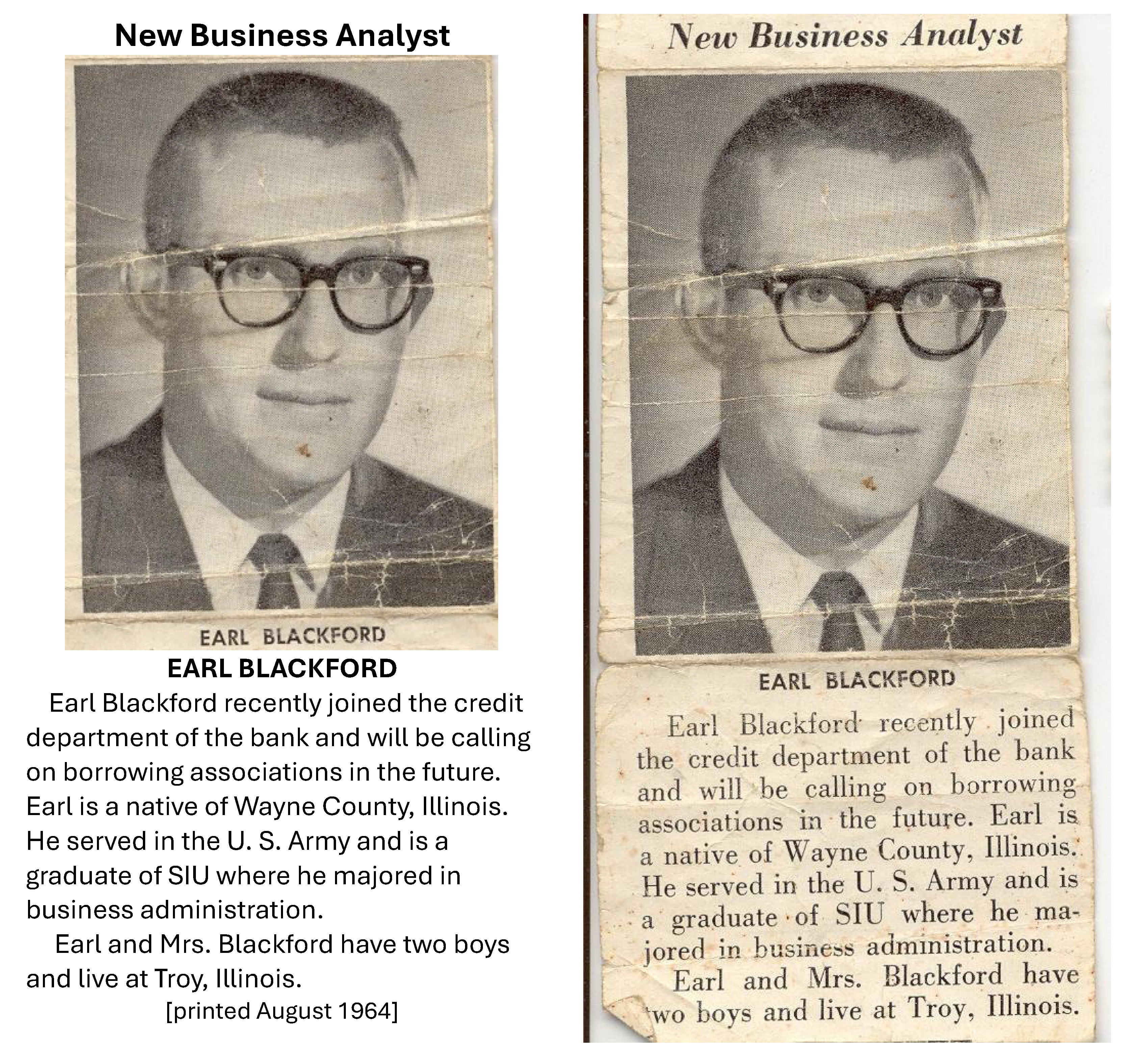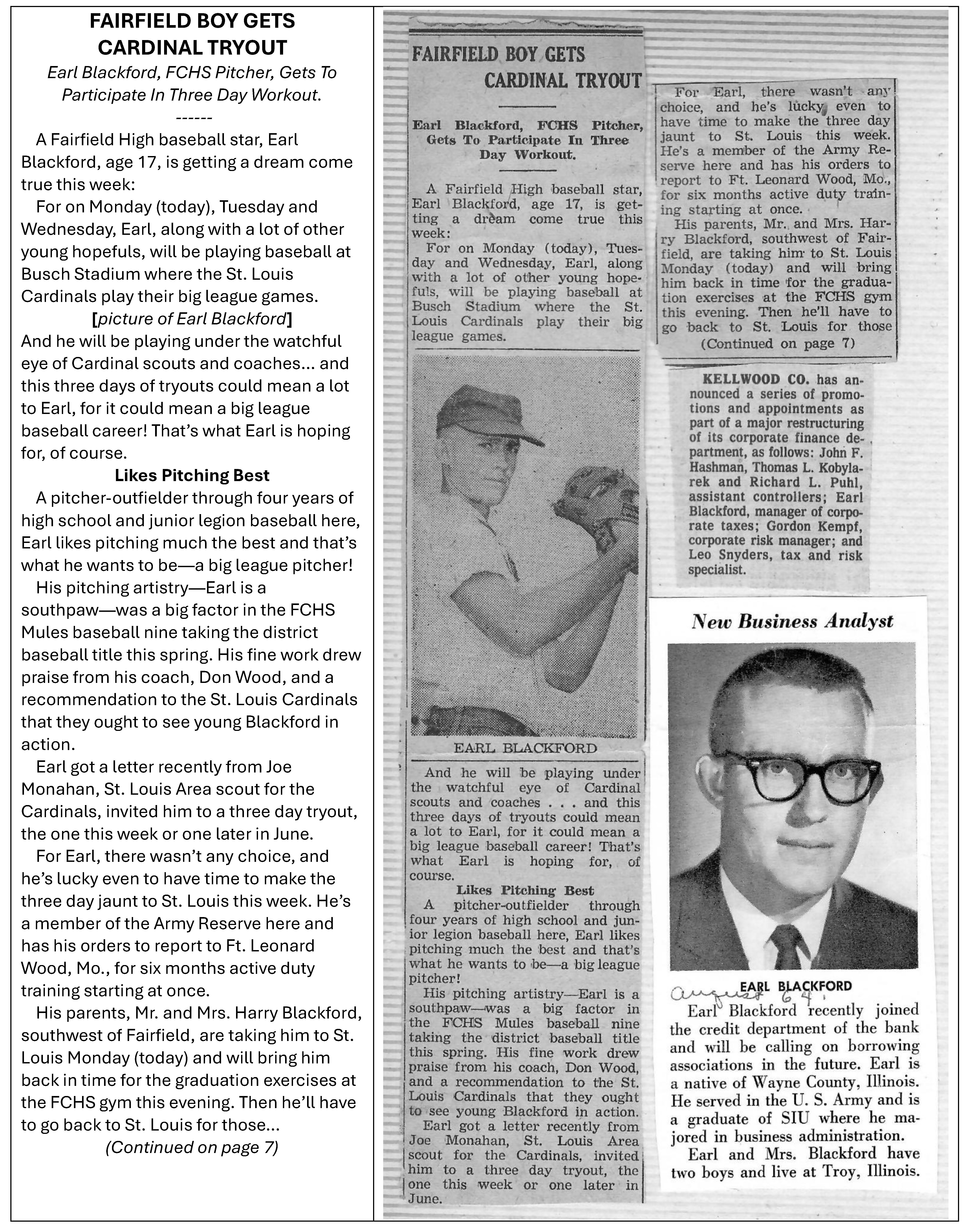Earl Eugene Blackford was born October 22, 1939, the first child of Harry and Neva Blackford. Sister Janice Pumprey and brother Glenn Blackford. Earl and his family worked a farm in Fairfield, Illinois (RR 4, Fairfield, IL 62837). When not working the farm Earl would play baseball and was a great left handed pitcher. As noted in the pictures above, Earl attended a one-room school during elementary school.